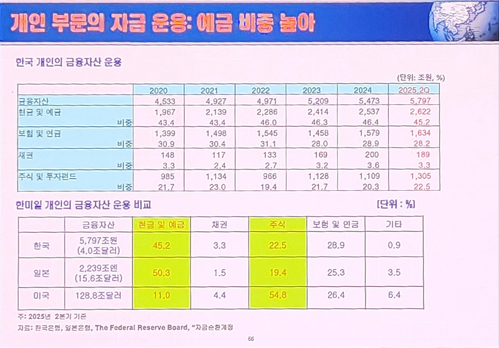 ✔️ 주식 비중 30% 이상으로 높여야 한다. 한국 현금 보유량 너무 높음.