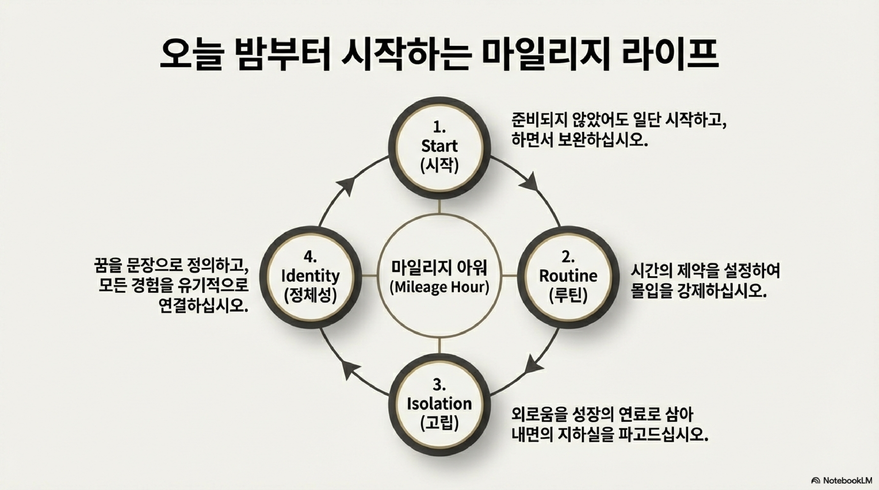 인생을 바꾸고 싶다면 거창한 내일을 계획하기보다, 당장 오늘 저녁의 4시간을 직면하십시오. 오늘 저녁 8시, 당신은 어떤 인생 마일리지를 쌓으시겠습니까?