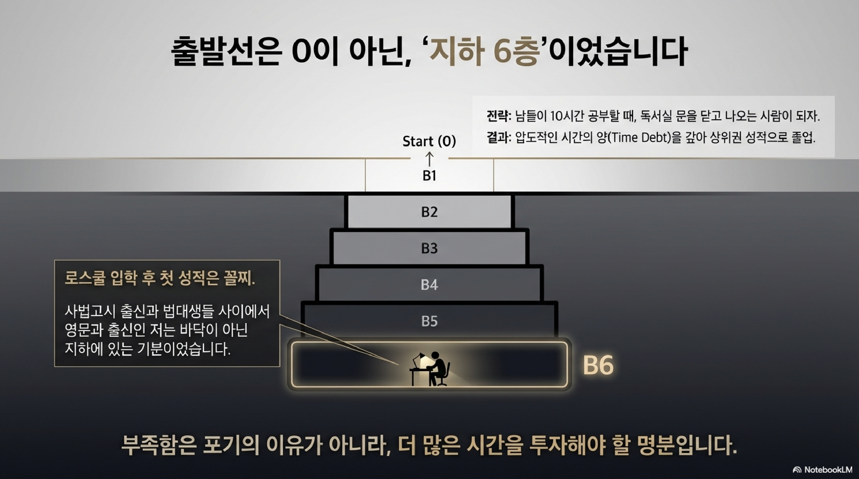 로스쿨 꼴찌에서 시작해 상위권으로 졸업하고, 현재 세 가지 역할을 완벽히 수행하는 그녀의 저력은 매일 저녁 8시부터 12시까지 묵묵히 쌓아온 '경험의 마일리지'에서 나왔습니다.